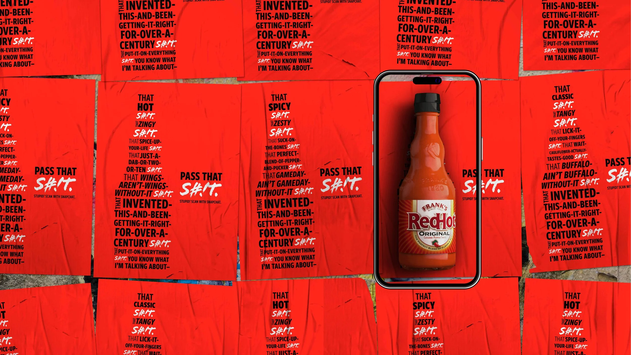 Guerilla posters will be posted around major cities. If viewers can’t crack the copy, they can scan with Snapchat to unlock an AR filter, revealing Frank’s bottle and hot sauce splats on everything.